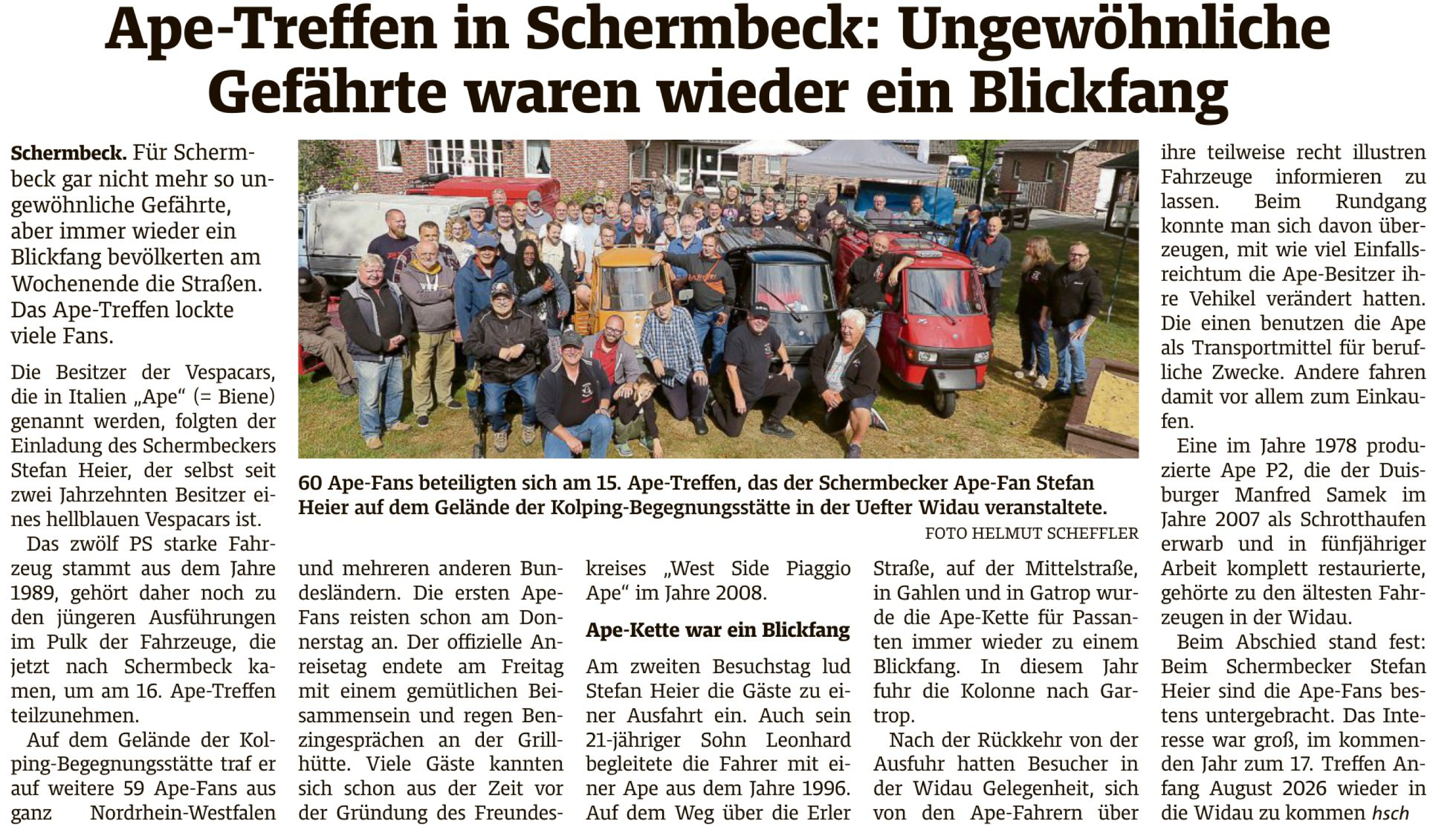 14. Treffen – Rund 50 Ape-Fans trafen sich in Schermbeck (Schermbeck-Online) Dorstener Zeitung 07.08.2023
